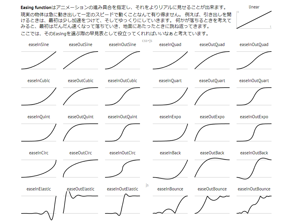 (Easing Function 早見表)https://easings.net/ja