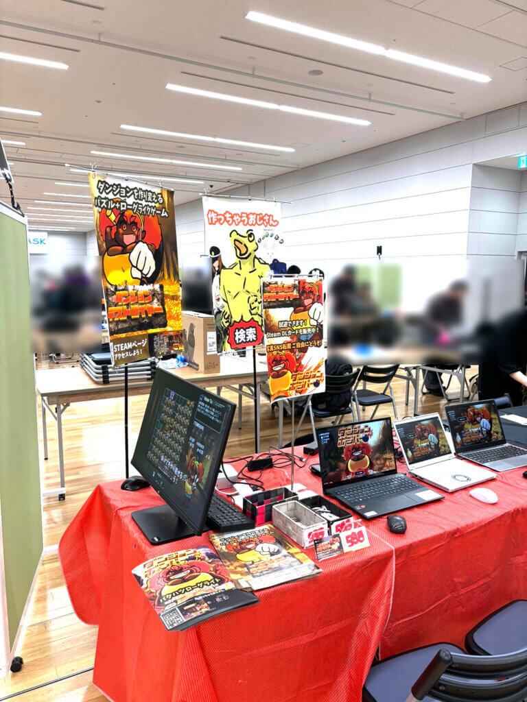 ちなみに次回はダンジョンボンバーをメインで展示していく予定です。3か月で1本Steamリリースする予定なのですが、SteamNextFesが2月にあるので、それに間に合わせてほぼ完成版である体験版をリリースできればと思います。