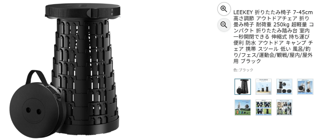 ちなみに椅子だけは他スペースで使われていて足りなかったため、Amazonで以下の折り畳み椅子を購入しています。蛇腹状に折りたためて左下の円盤状まで小さくなるので便利!