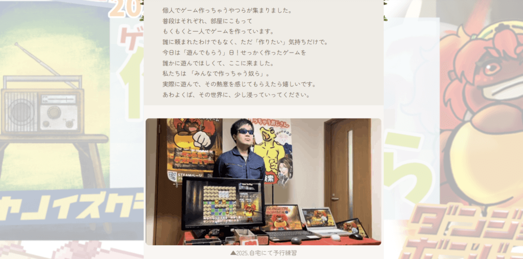 個人開発者同士で実践を通して学んだ情報を記事にしていくのですが、その中で個人ゲーム開発者の門田めいあさんの記事に刺激を受けました。名古屋で個展を開いた話です。