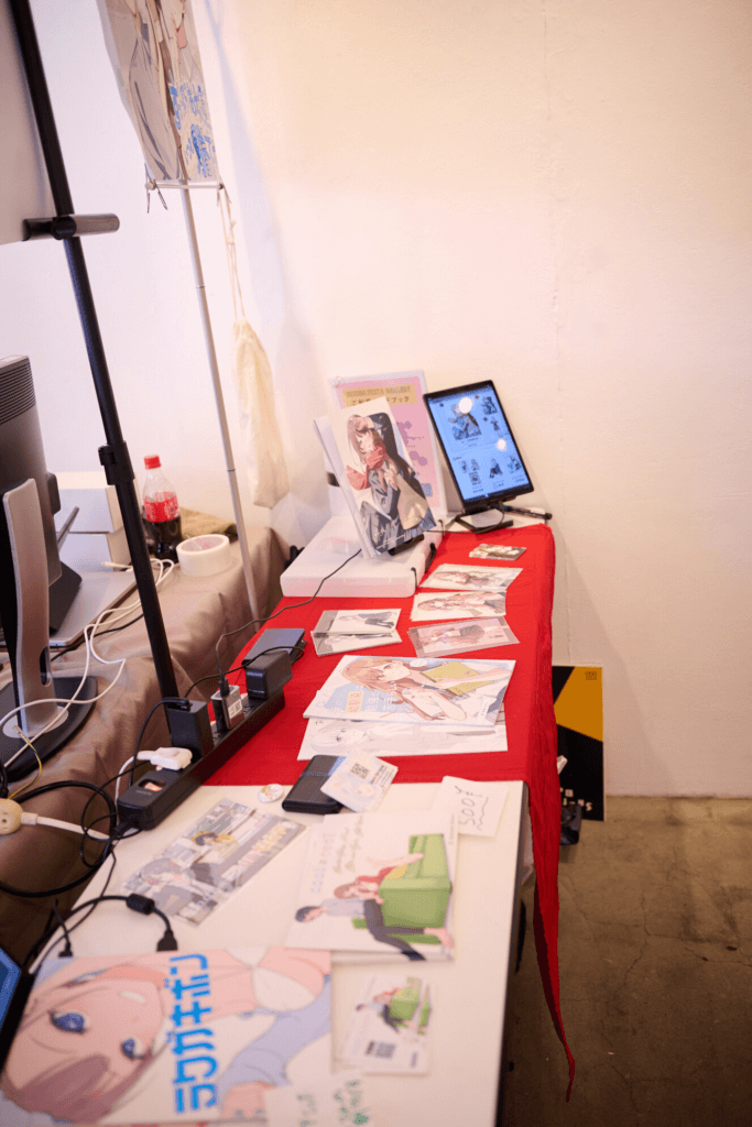 レイアウトが決まったので出展者6名で顔合わせをして、レイアウトから各自のスペースを決めていきました。ここまで終われば物理的な出展準備はほぼ完了。