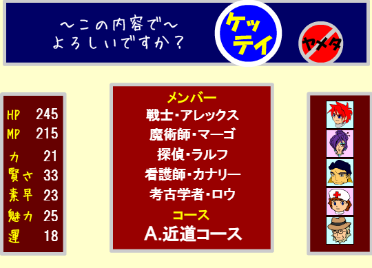 ということで、パーティ決定。コースと持ち物を決めて、いざ冒険の旅に!