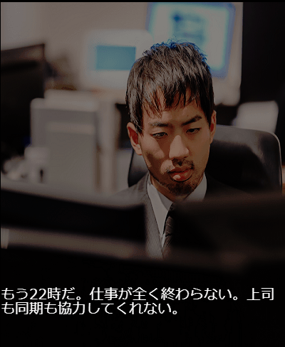 まず、主人公の会社での孤立感でプレイの動機付けを行いました。